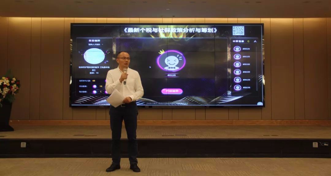 (主办方及曾老师为嘉宾颁发精美奖品) 著名财税专家曾建斌老师以幽默风趣、通俗易懂的授课风格,对国家最新出台的个税与社保政策进行了深度的解读,结合中山企业的实际情况进行了系统性的分析,并提出了一些针对性的解决思路和具体方案。
